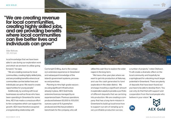 — Eldur Olafsson , CEO , AEX Gold