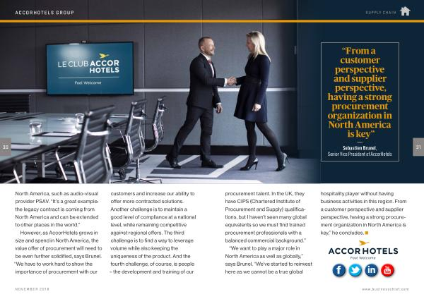 “ We want to play a major role in North America as well as globally ,” says Brunel . “ We ’ ve started to reinvest here as we cannot be a true global hospitality player without having business activities in this region . From a customer perspective and supplier perspective , having a strong procurement organization in North America is key ,” he concludes .