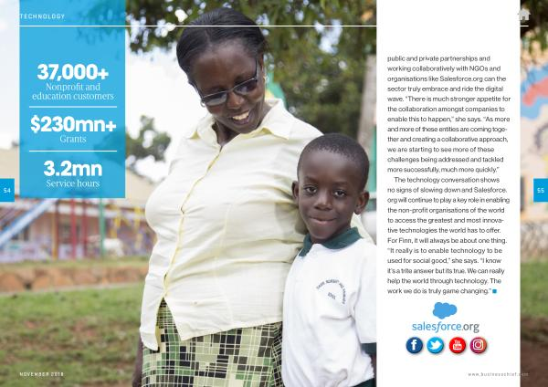 The technology conversation shows no signs of slowing down and Salesforce . org will continue to play a key role in enabling the non-profit organisations of the world to access the greatest and most innovative technologies the world has to offer . For Finn , it will always be about one thing . “ It really is to enable technology to be used for social good ,” she says . “ I know it ’ s a trite answer but its true . We can really help the world through technology . The work we do is truly game changing .”