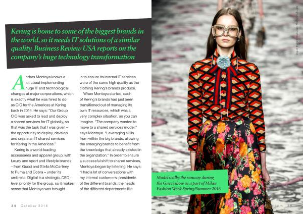 Andres Montoya knows a lot about implementing huge IT and technological changes at major corporations , which is exactly what he was hired to do as CIO for the Americas at Kering back in 2014 . He says : “ Our Group CIO was asked to lead and deploy a shared services for IT globally , so that was the task that I was given – the opportunity to deploy , develop and create an IT shared services for Kering in the Americas .”