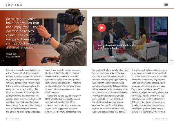 ‘ core values ’ that are simply , what I call , ‘ permission to play values ’. They ’ re not unique to them and so they don ’ t become a shared language .” Instead , Quontic Bank allows the following principles to guide its daily operations : 1 ) Progress not perfect : a steady state of constant improvement is favoured over rapid quests for unattainable perfection ; 2 ) Try it on : emphasising a fast-paced decision-making process , Quontic Bank is willing to try new ideas , retain the ones that work and discard those that don ’ t ; 3 )