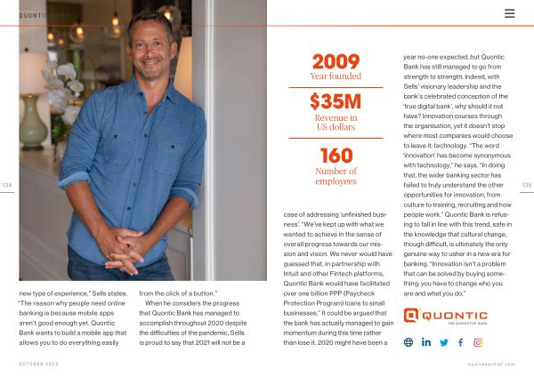 When he considers the progress that Quontic Bank has managed to accomplish throughout 2020 despite the difficulties of the pandemic , Sells is proud to say that 2021 will not be a