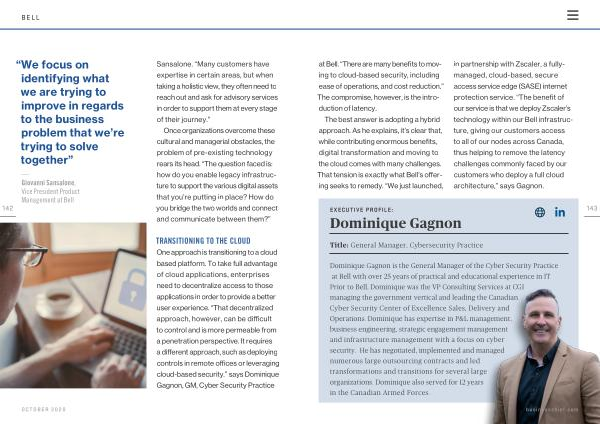 Dominique Gagnon is the General Manager of the Cyber Security Practice at Bell with over 25 years of practical and educational experience in IT . Prior to Bell , Dominique was the VP Consulting Services at CGI managing the government vertical and leading the Canadian Cyber Security Center of Excellence Sales , Delivery and Operations . Dominique has expertise in P & L management , business engineering , strategic engagement management and infrastructure management with a focus on cyber security . He has negotiated , implemented and managed numerous large outsourcing contracts and led transformations and transitions for several large organizations . Dominique also served for 12 years in the Canadian Armed Forces . businesschief . com