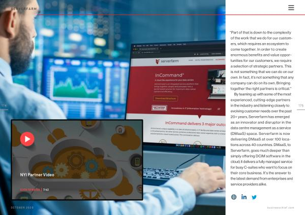 By teaming up with some of the most experienced , cutting-edge partners in the industry and listening closely to evolving customer needs over the past 20 + years , Serverfarm has emerged as an innovator and disruptor in the data centre management as a service ( DMaaS ) space . Serverfarm is now delivering DMaaS at over 100 locations across 40 countries . DMaaS , to Serverfarm , goes much deeper than simply offering DCIM software in the cloud ; it delivers a fully managed service for busy C-suites who want to focus on their core business . It ’ s the answer to the latest demand from enterprises and service providers alike .