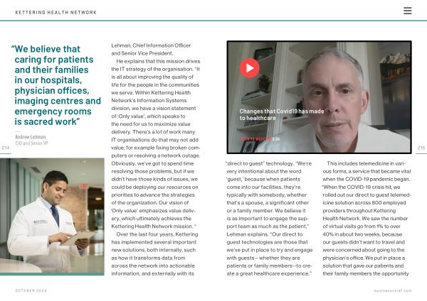 He explains that this mission drives the IT strategy of the organisation . “ It is all about improving the quality of life for the people in the communities we serve . Within Kettering Health Network ’ s Information Systems division , we have a vision statement of ‘ Only value ’, which speaks to the need for us to maximize value delivery . There ’ s a lot of work many IT organisations do that may not add value , for example fixing broken computers or resolving a network outage . Obviously , we ’ ve got to spend time resolving those problems , but if we didn ’ t have those kinds of issues , we could be deploying our resources on priorities to advance the strategies of the organization . Our vision of ‘ Only value ’ emphasizes value delivery , which ultimately achieves the Kettering Health Network mission . “