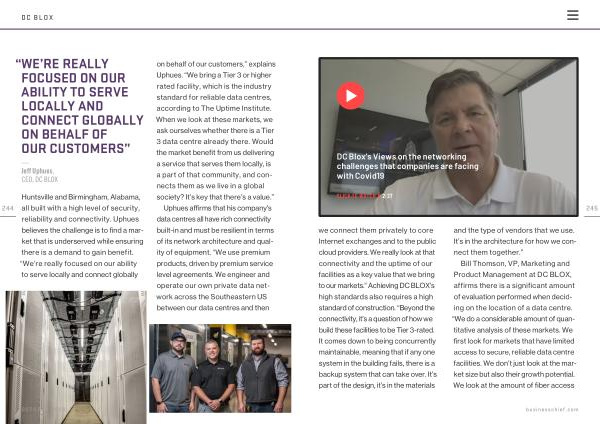 245 we connect them privately to core Internet exchanges and to the public cloud providers . We really look at that connectivity and the uptime of our facilities as a key value that we bring to our markets .” Achieving DC BLOX ’ s high standards also requires a high standard of construction . “ Beyond the connectivity , it ’ s a question of how we build these facilities to be Tier 3-rated . It comes down to being concurrently maintainable , meaning that if any one system in the building fails , there is a backup system that can take over . It ’ s part of the design , it ’ s in the materials and the type of vendors that we use . It ’ s in the architecture for how we connect them together .”