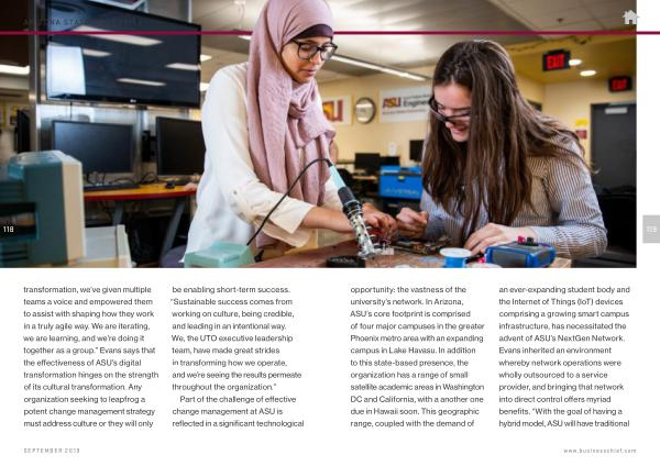 an ever-expanding student body and the Internet of Things ( IoT ) devices comprising a growing smart campus infrastructure , has necessitated the advent of ASU ’ s NextGen Network . Evans inherited an environment whereby network operations were wholly outsourced to a service provider , and bringing that network into direct control offers myriad benefits . “ With the goal of having a hybrid model , ASU will have traditional