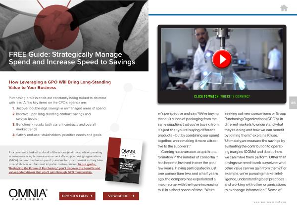 seeking out new consortiums or Group Purchasing Organizations ( GPO ’ s ), in different markets to understand what they ’ re doing and how we can benefit by joining them ,” explains Kruse . “ Ultimately , we measure the savings by evaluating the contribution to operating margins ( COMs ) and decide how we can make them perform . Other than savings we need to ask ourselves : what other value can we gain from them ? For example , we ’ re pursuing market intelligence , understanding best practices and working with other organizations to exchange information .” Some of