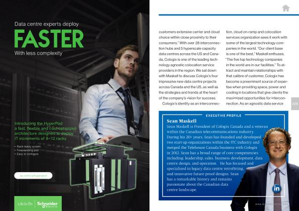 customers extensive carrier and cloud choice within close proximity to their consumers .” With over 28 interconnection hubs and 5 hyperscale capacity data centres across the US and Canada , Cologix is one of the leading technology agnostic colocation service providers in the region . We sat down with Maskell to discuss Cologix ’ s four impressive new data centre projects across Canada and the US , as well as the strategies and trends at the heart of the company ’ s vision for success .