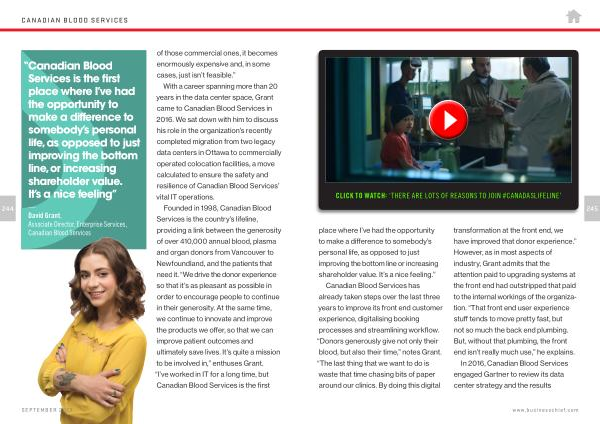 Founded in 1998 , Canadian Blood Services is the country ’ s lifeline , providing a link between the generosity of over 410,000 annual blood , plasma and organ donors from Vancouver to Newfoundland , and the patients that need it . “ We drive the donor experience so that it ’ s as pleasant as possible in order to encourage people to continue in their generosity . At the same time , we continue to innovate and improve the products we offer , so that we can improve patient outcomes and ultimately save lives . It ’ s quite a mission to be involved in ,” enthuses Grant . “ I ’ ve worked in IT for a long time , but Canadian Blood Services is the first