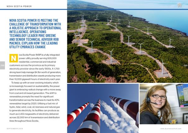 NOVA SCOTIA POWER IS MEETING THE CHALLENGE OF TRANSFORMATION WITH A HOLISTIC APPROACH TO OPERATIONAL INTELLIGENCE . OPERATIONS TECHNOLOGY LEADER MIKE GREENE AND SENIOR TECHNICAL ADVISOR ROB MACNEIL EXPLAIN HOW THE LEADING UTILITY EMBRACES CHANGE